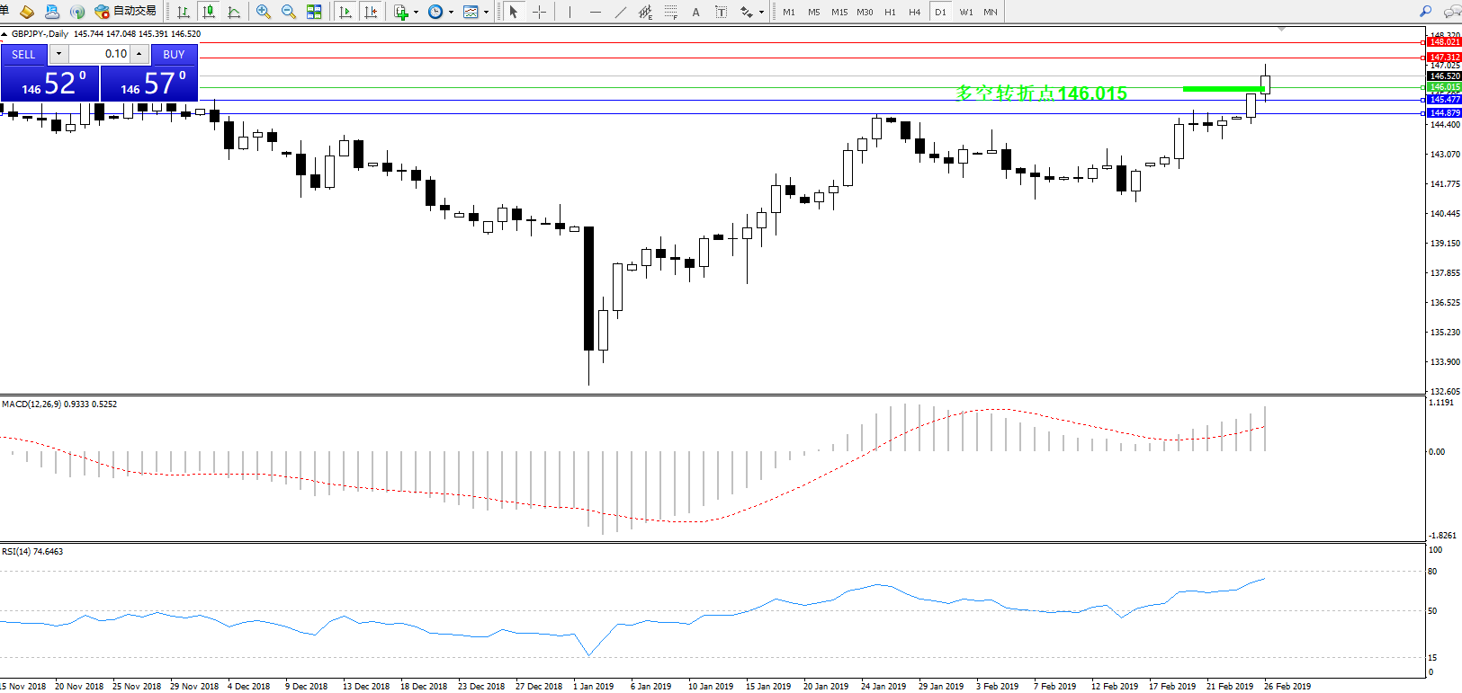 交易策略:146.015上方看涨,目标147.312148.021