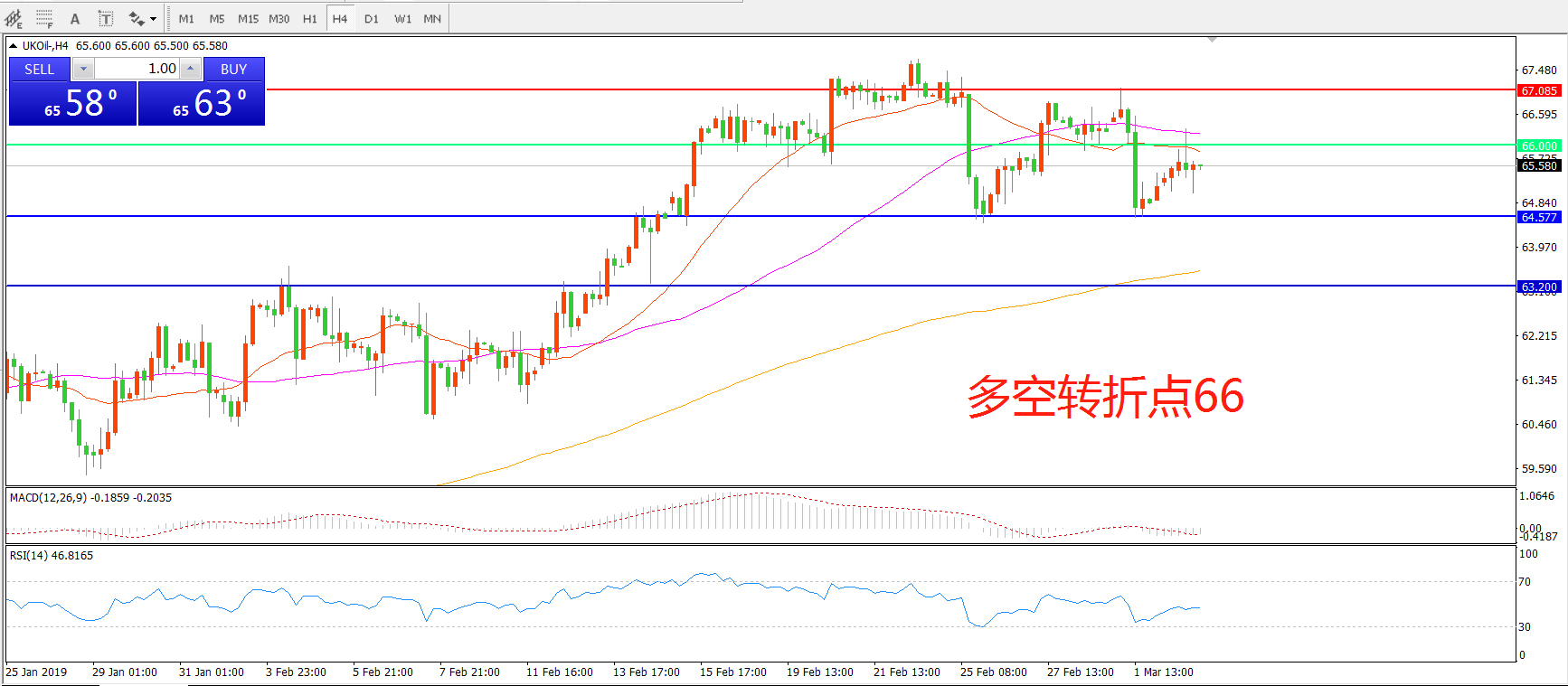 多空转折点:66.00