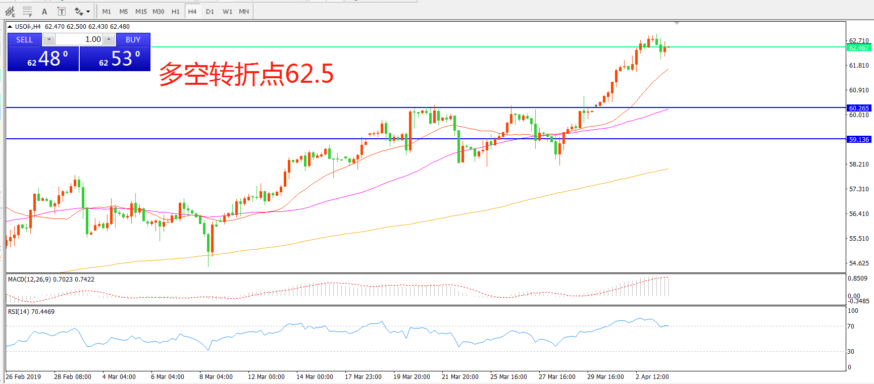 多空转折点:62.50