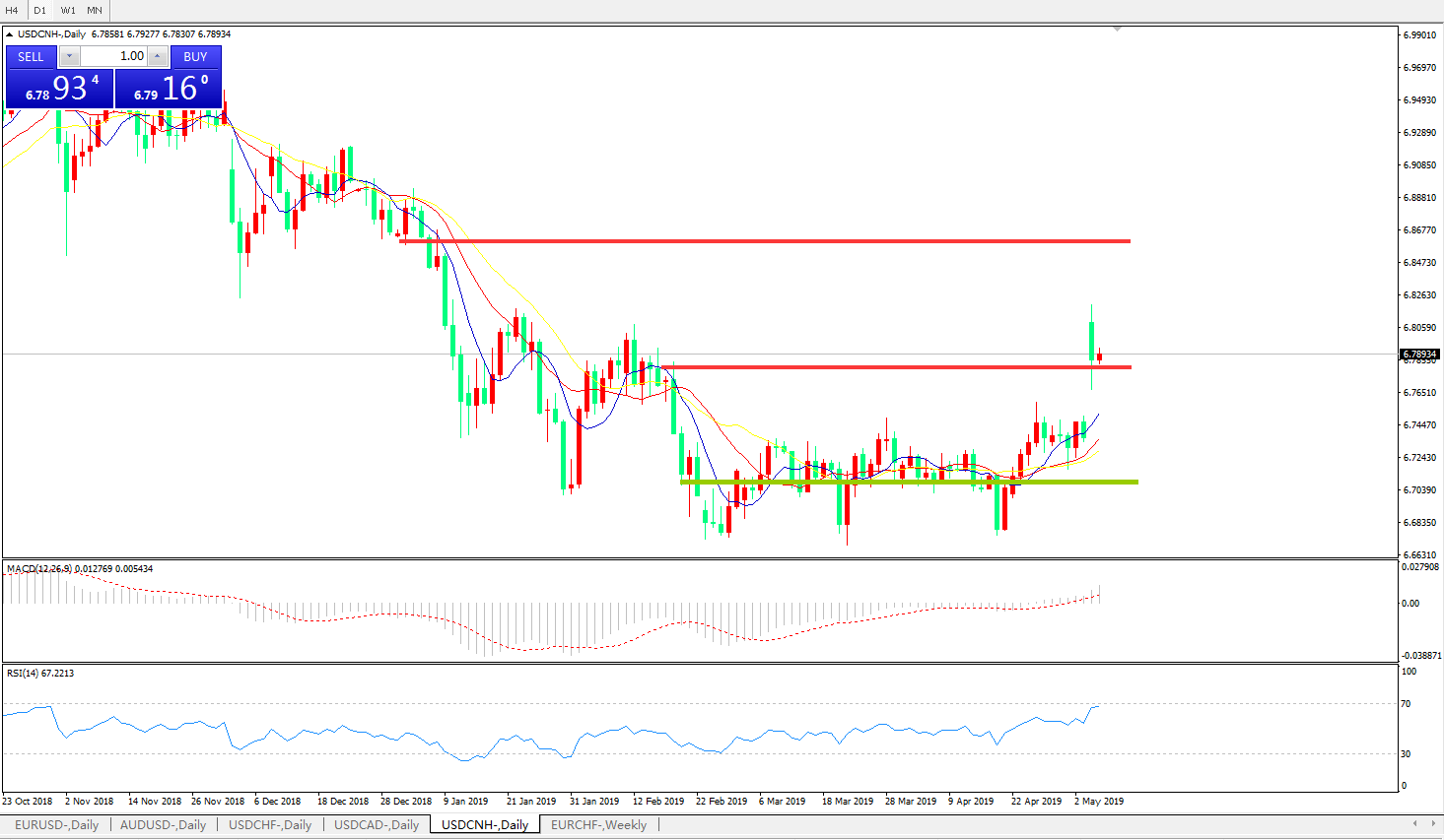 技术面简析:日线均线呈有序多头排列看多汇价高开后小幅度回踩整理,MACD上穿0轴且动能柱0轴上方快速放量RSI急速走升,汇价击穿上方压制继续上行,预计短期汇价或存在整理可能,中期不排除有进一步上行空间,重点关注中美贸易谈判最新进展及特朗普推特更新情况