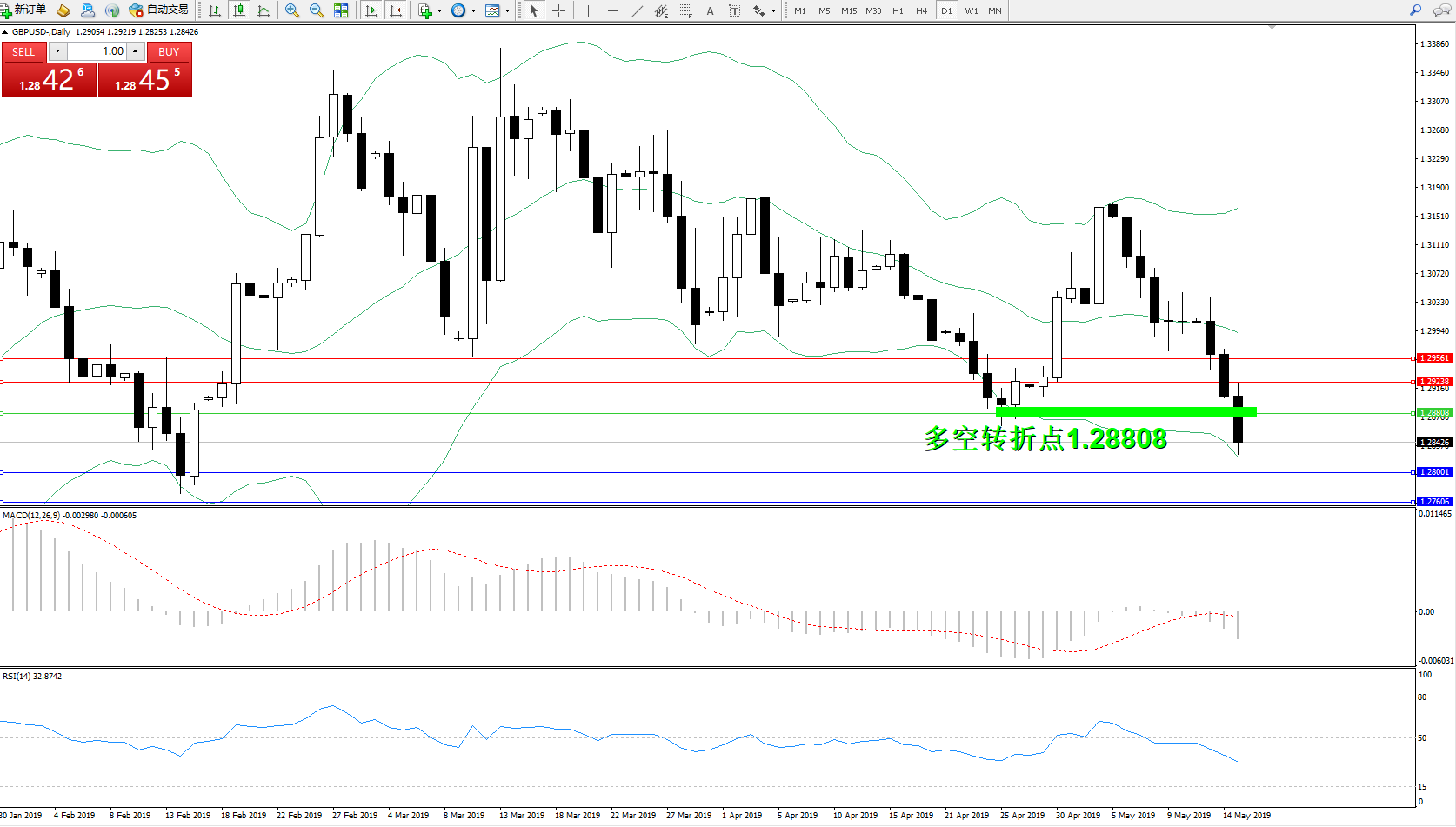 英镑兑美元昨日持续走低,并刷新三个月低点于1.2835,因跨党脱欧谈判貌似“毫无进展,加剧了市场对于英镑的抛售。此外保守党在欧洲议会选举中可能遭遇惨败的前景和美元的相对强势也进一步施压英镑。尽管近期英国的经济数据有所好转,尤其是失业率方面此前一度下降至3.8%,为逾40年来的最低水平。尽管如此,市场对于英国的经济数据反映平淡,因市场更多的关注脱欧局势的进展。英国议会下院计划在63日至7日那一周就首相特雷莎·梅提交的脱欧法案进行第四度也很可能是最后一次表决,一旦再失利,或意味着梅姨政治生涯的终结。而梅姨的北爱尔兰统一民主党盟友日内也对此表示失望,称协议内容如欲闯关成功,需要进行“大面积改动”。