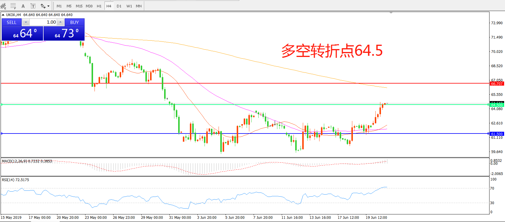 交易策略:在64.50之上看涨,目标66.70    70.00