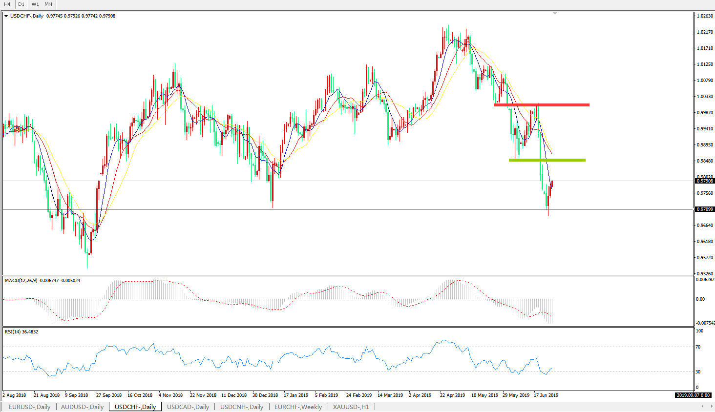 美元兑瑞郎USDCHF 日线图: