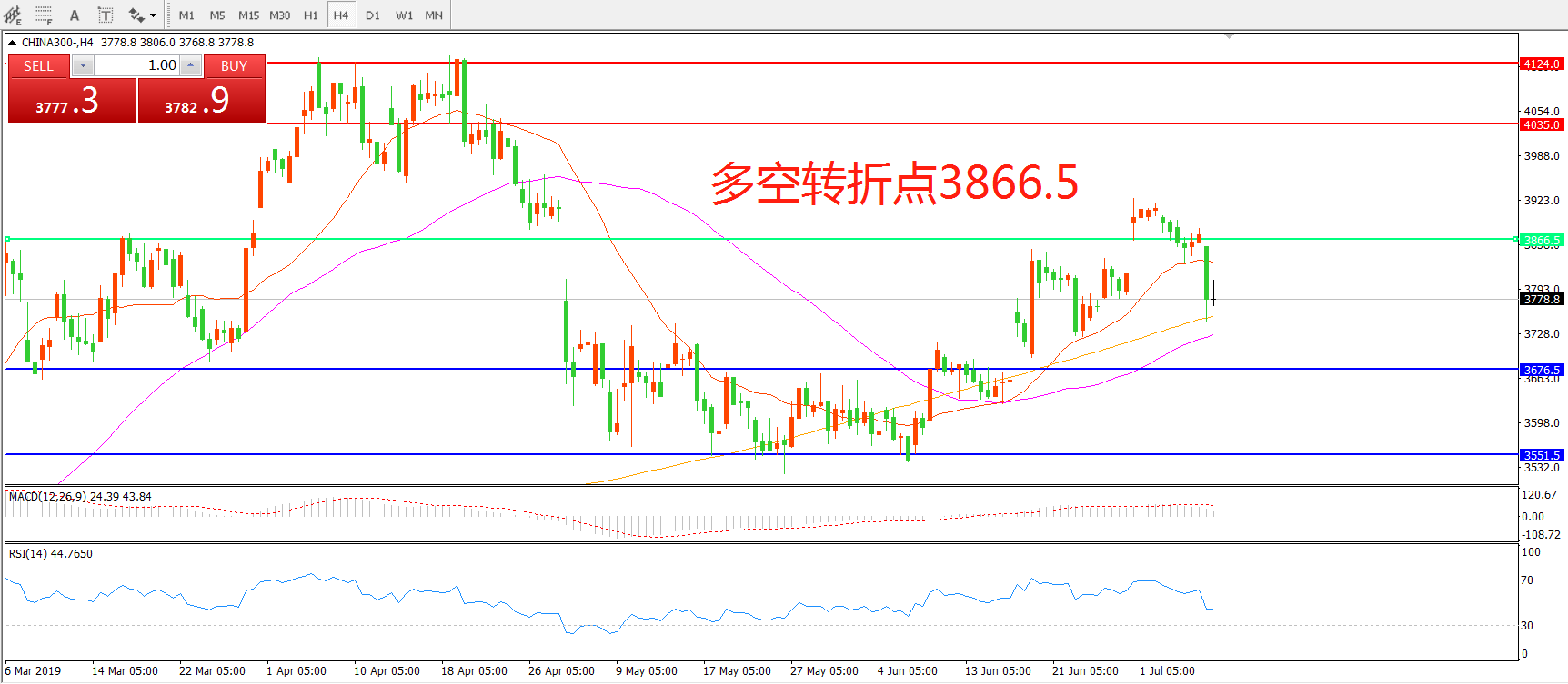 沪深300指数CHINA300 4小时图