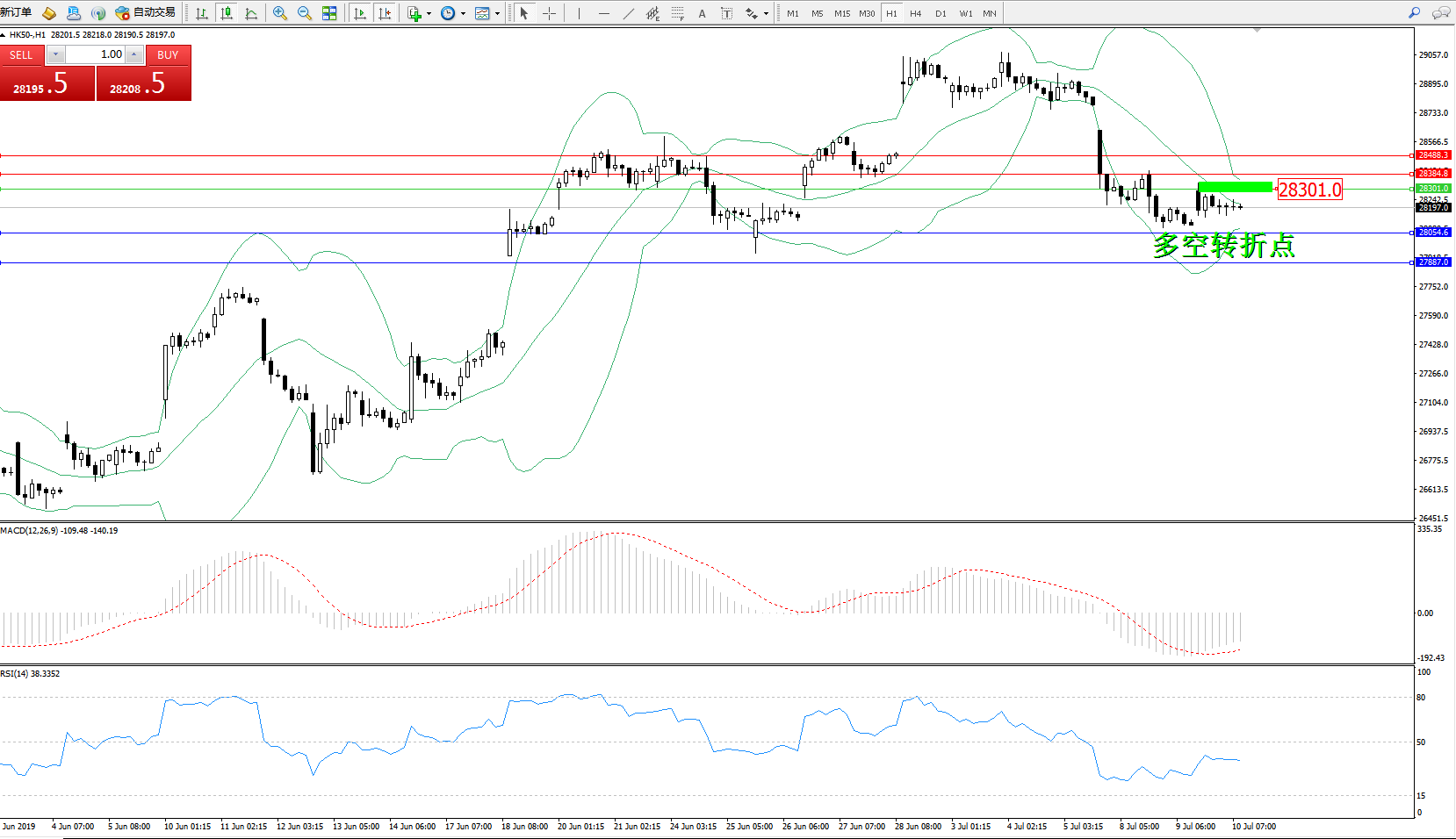 恒指HK50 ——1小时K线图显示: