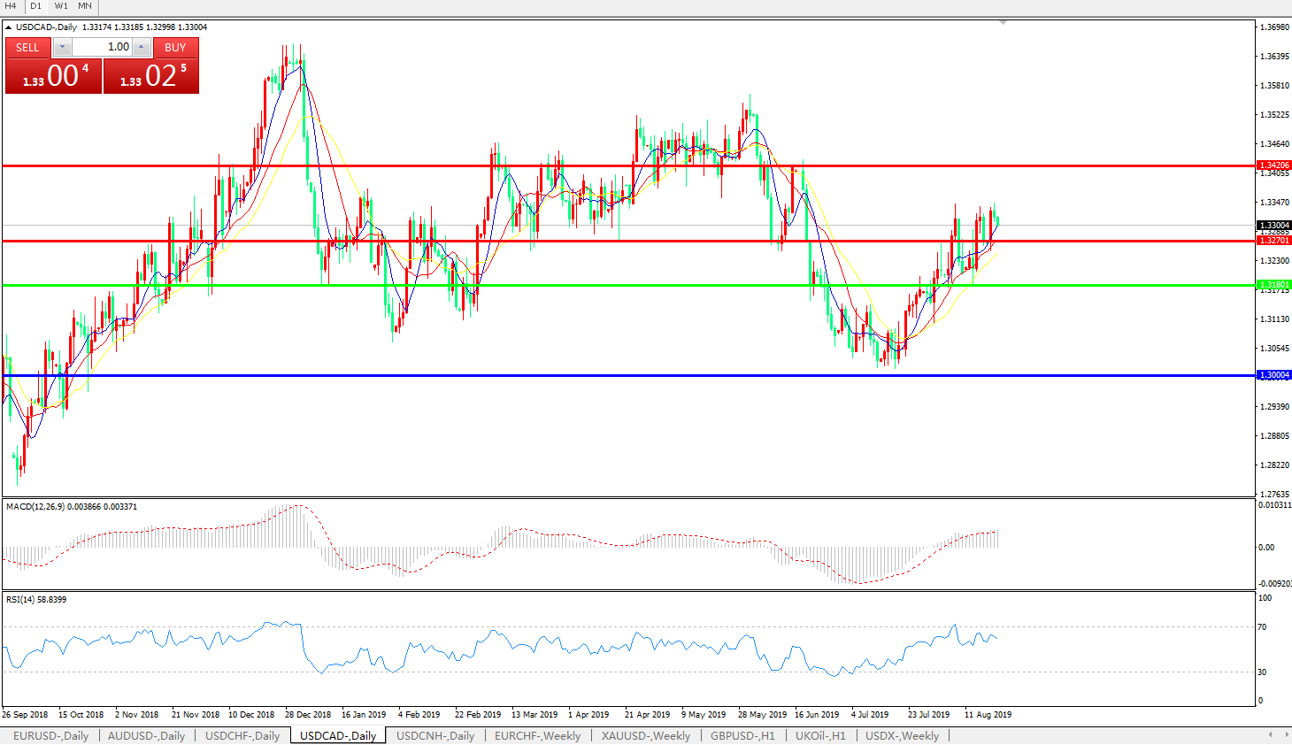 美元兑加元USDCAD    日线图:
