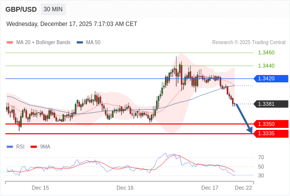 交易策略: 在 1.3420 之下,看跌,目标价位为 1.3350 ,然后为 1.3335 。
