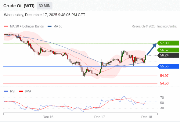 在 55.55 之上,看涨,目标价位为 56.57 ,然后为 57.00 。
