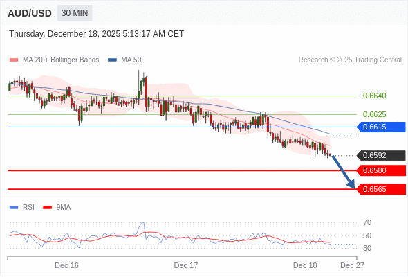 在 0.6615 之下,看跌,目标价位为 0.6580 ,然后为 0.6565 。