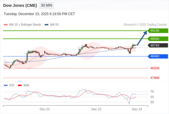 在 48460 之上,看涨,目标价位为 48920 ,然后为 49130 。