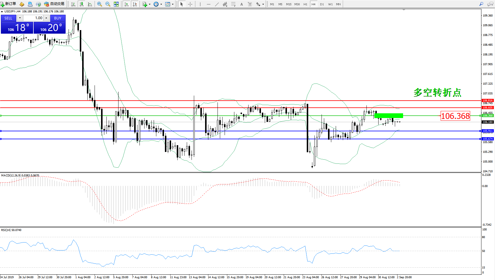 交易策略:106.368下方看跌,目标105.911105.674
