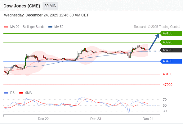 在 48460 之上,看涨,目标价位为 48920 ,然后为 49130 。