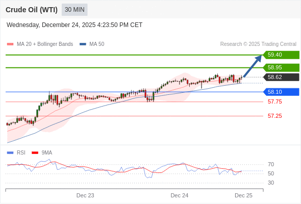 在 58.10 之上,看涨,目标价位为 58.95 ,然后为 59.40 。