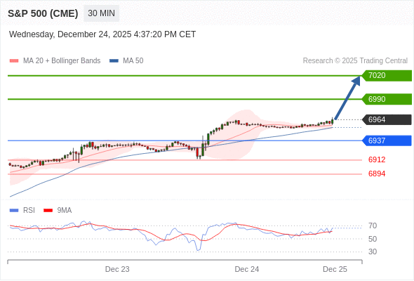 在 6937 之上,看涨,目标价位为 6990 ,然后为 7020 。