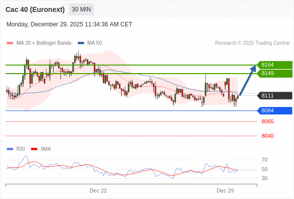 在 8084 之上,看涨,目标价位为 8149 ,然后为 8164 。