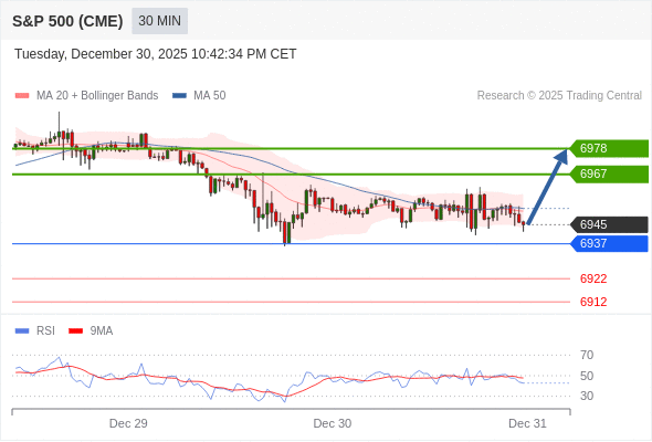 在 6937 之上,看涨,目标价位为 6967 ,然后为 6978 。