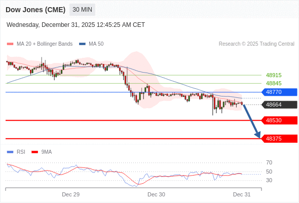 在 48770 之下,看跌,目标价位为 48530 ,然后为 48375 。