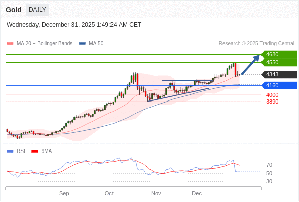 交易策略: 在 4160 之上,看涨,目标价位为 4550 ,然后为 4680 。