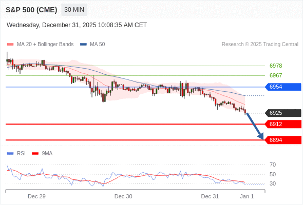 在 6954 之下,看跌,目标价位为 6912 ,然后为 6894 。