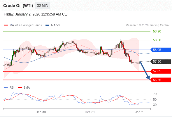 在 58.05 之下,看跌,目标价位为 57.05 ,然后为 56.65 。