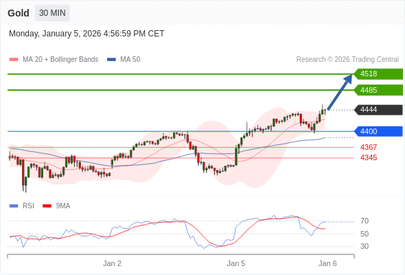 在 4400 之上,看涨,目标价位为 4485 ,然后为 4518 。