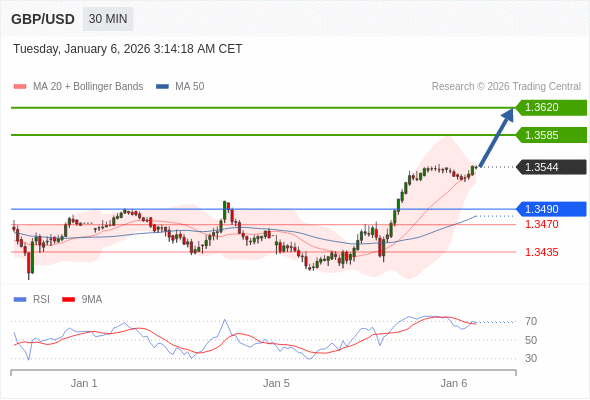 在 1.3490 之上,看涨,目标价位为 1.3585 ,然后为 1.3620 。