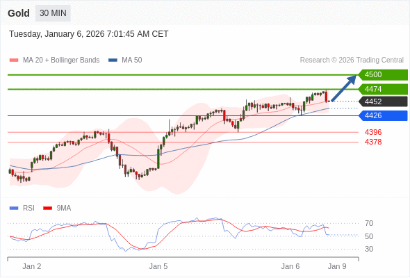 在 4426 之上,看涨,目标价位为 4474 ,然后为 4500 。