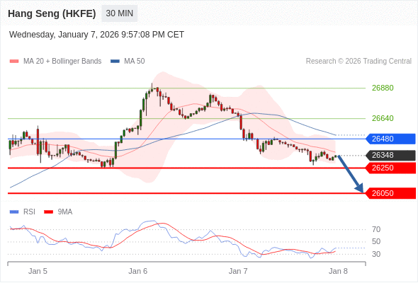 香港恒生指数期货 当日内: 短期关键阻力位在26480。