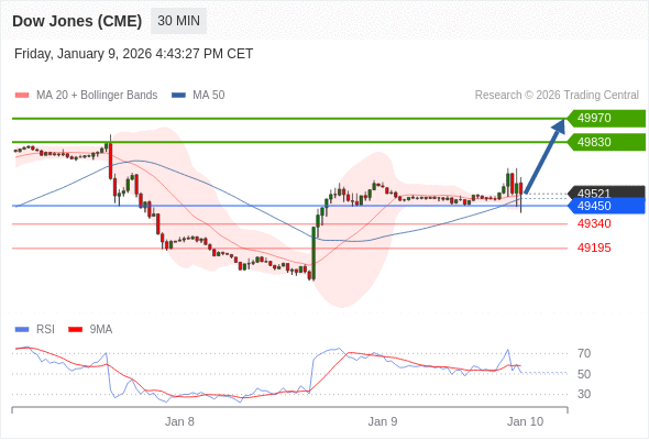 在 49450 之上,看涨,目标价位为 49830 ,然后为 49970 。