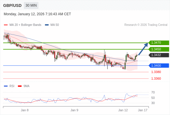 在 1.3400 之上,看涨,目标价位为 1.3450 ,然后为 1.3470 。