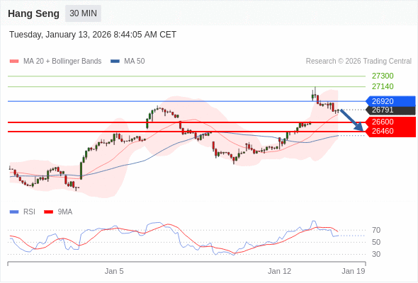 在 26920 之下,看跌,目标价位为 26600 ,然后为 26460 。