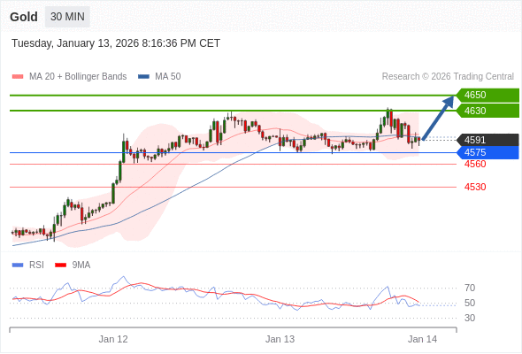 在 4575 之上,看涨,目标价位为 4630 ,然后为 4650 。