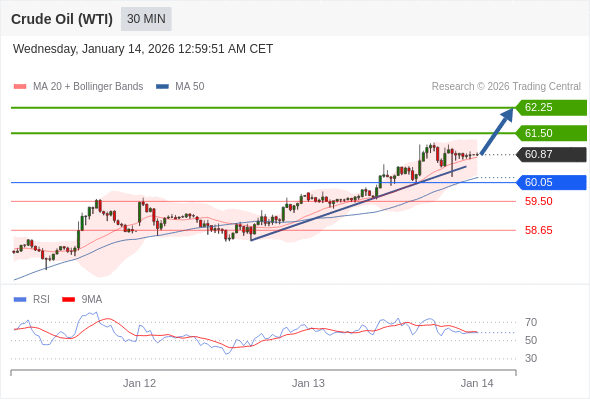 在 60.05 之上,看涨,目标价位为 61.50 ,然后为 62.25 。