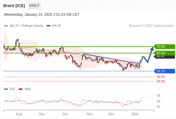 在 58.70 之上,看涨,目标价位为 67.00 ,然后为 70.00 。