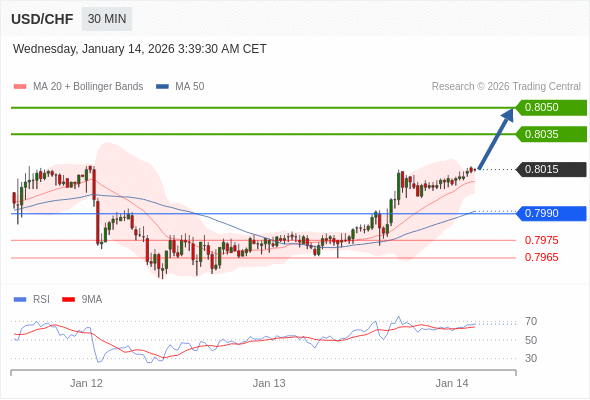 在 0.7990 之上,看涨,目标价位为 0.8035 ,然后为 0.8050 。