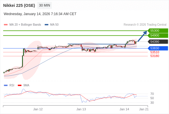 在 53830 之上,看涨,目标价位为 54900 ,然后为 55300 。