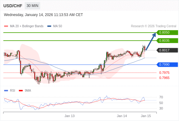 在 0.7990 之上,看涨,目标价位为 0.8035 ,然后为 0.8050 。