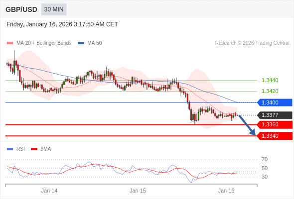 在 1.3400 之下,看跌,目标价位为 1.3360 ,然后为 1.3340 。