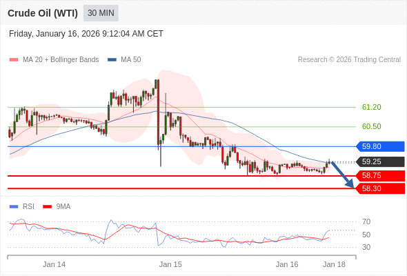 在 59.80 之下,看跌,目标价位为 58.75 ,然后为 58.30 。