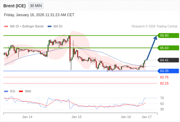 在 63.30 之上,看涨,目标价位为 65.60 ,然后为 66.80 。