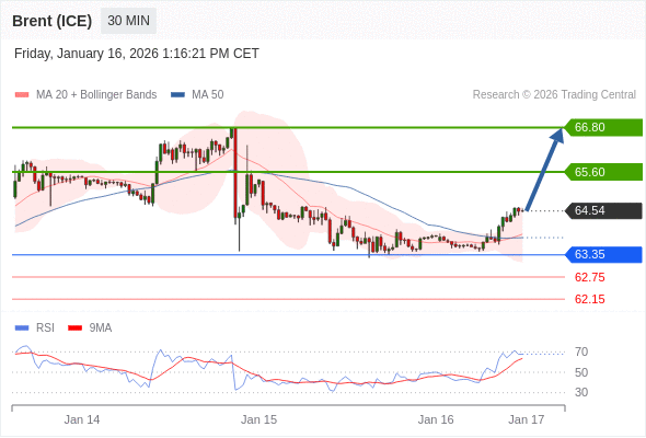 在 63.30 之上,看涨,目标价位为 65.60 ,然后为 66.80 。