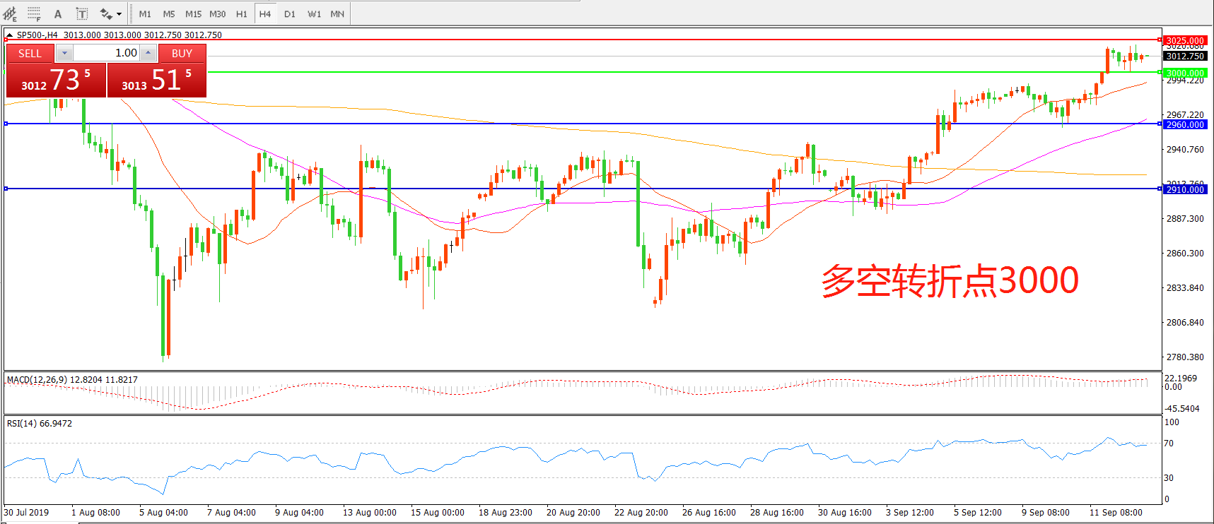 多空转折点:3000.00