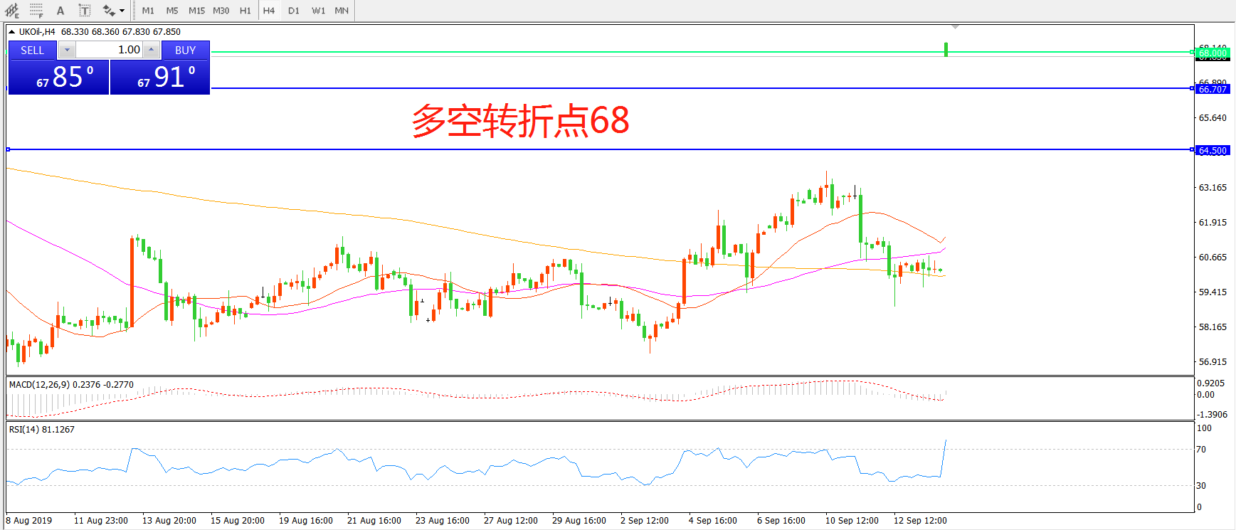 多空转折点:68.00