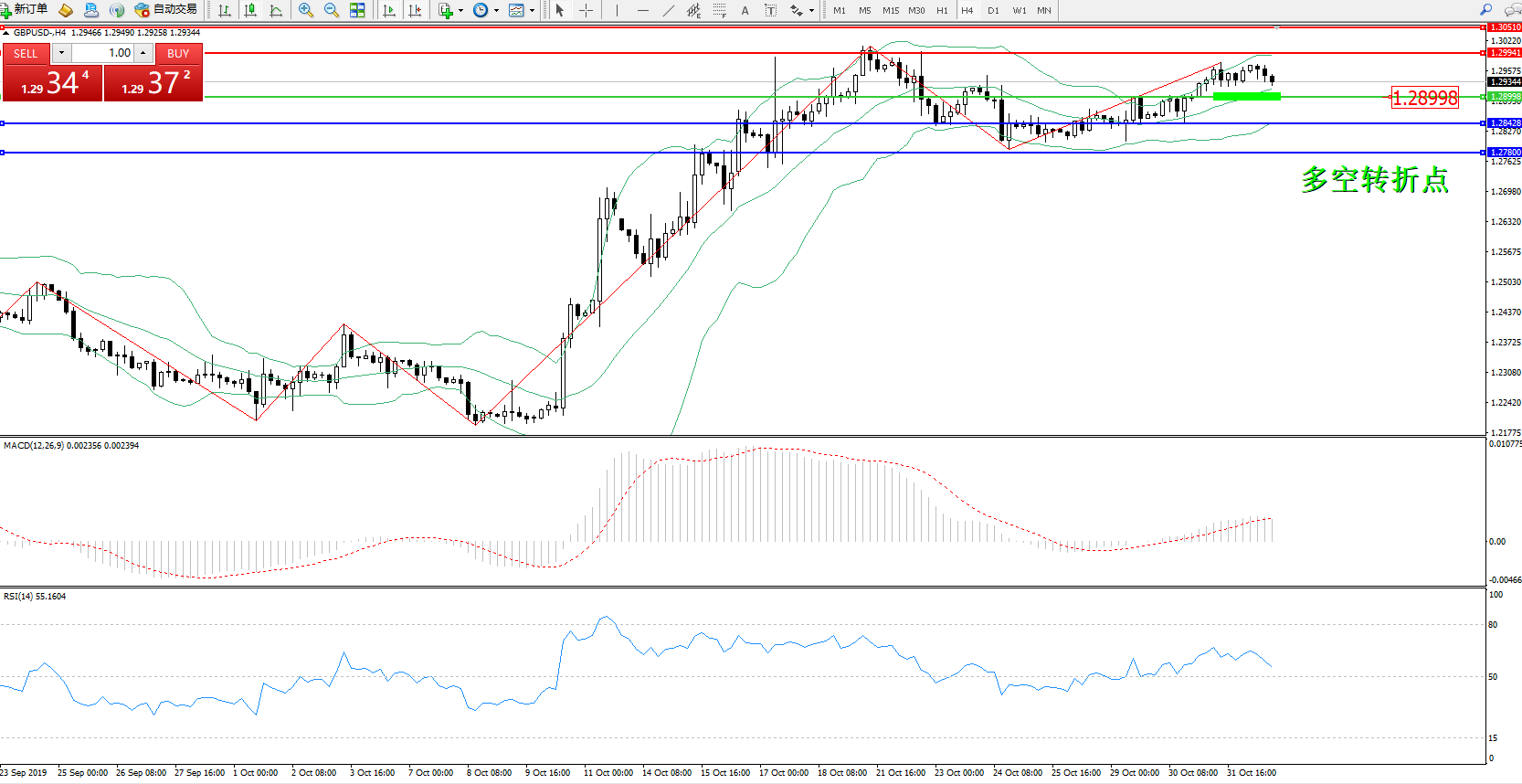 交易策略:1.28998上方看涨,目标1.29941、1.30510