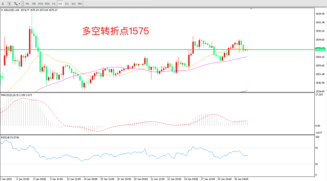多空转折点:1575.00