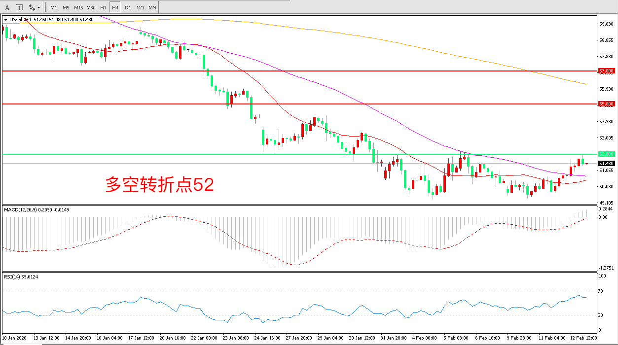 周三(2月12日),美国EIA公布的数据显示,EIA原油库存增加745.9万桶,超过预期,但与API数据表现不同的是,汽油与精炼油的库存同步出现减少,抵消了原油库存的利空效应,此外中国防控新冠疫情效果显著,点燃了市场的风险情绪,美油自低位大幅反弹,收报51.69美元/桶。