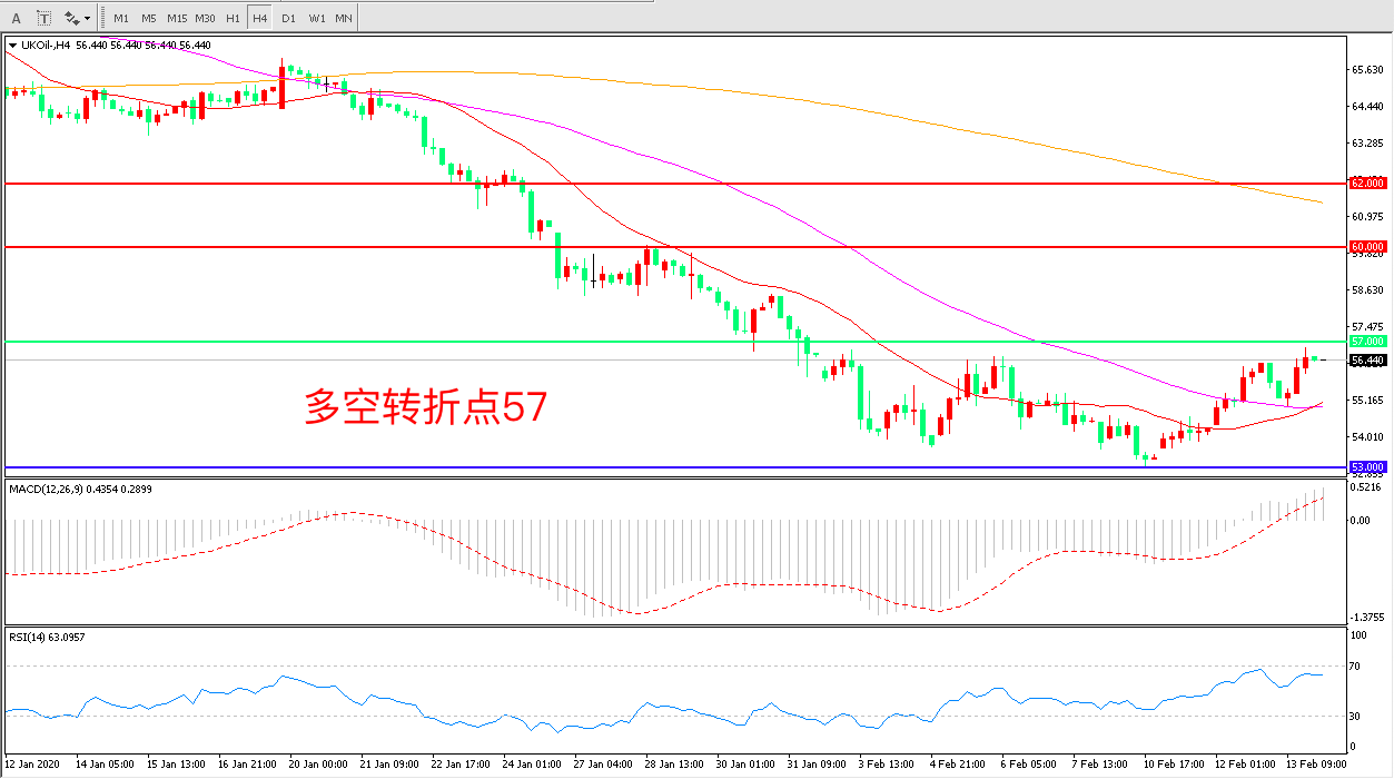 交易策略:在57.00之上看涨,目标60.00    62.00