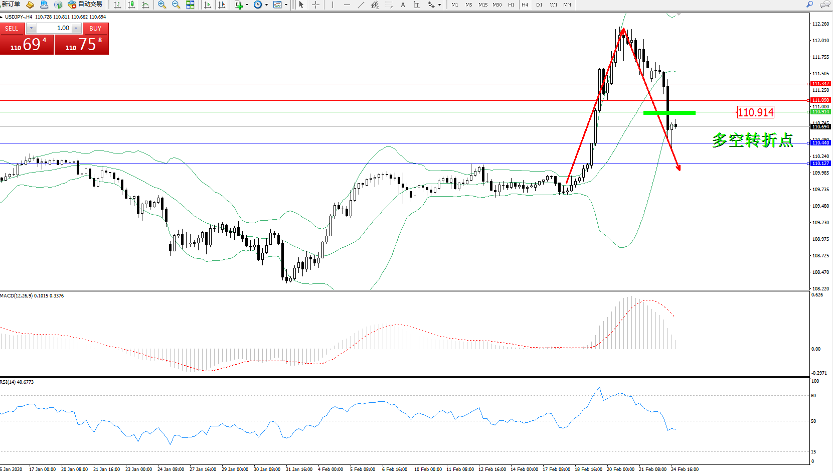 交易策略:110.914下方看跌,目标110.440、110.127