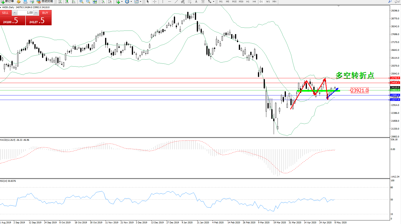 恒指HK50 ——日K线图显示: