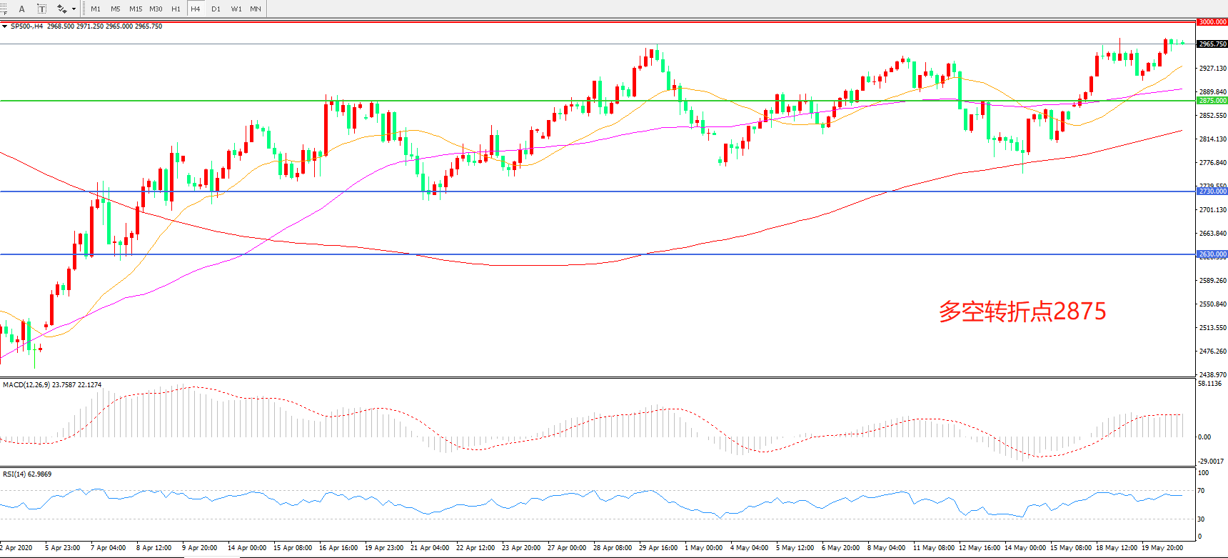 多空转折点:2875.00